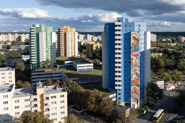 Having grown up in Hanover and trained in fashion design, Jumu developed visual forms of expression and a symbolic visual language that is influenced by her Latin American roots. These cultural and spiritual references merge with her urban, often color-intensive and geometrically structured visual language to create an unmistakable style.